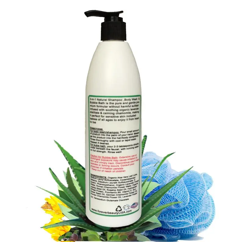 3-in-1 Natural Shampoo, Body Wash & Bubble Bath is a pure and gentle premium formula without harmful sulfate! Infused with soothing organic lavender distillate & calming chamomile. With all-natural ingredients that help to protect your hair follicles, it is imaging to see how it could help to reduce hair loss naturally! It’s a mild shampoo with a fresh, clean, and sweet scent! You will love it! It is also great for body/ hand washing or a fun bubbly bubble bath experience. It will help to keep your skin fresh and silky smooth!